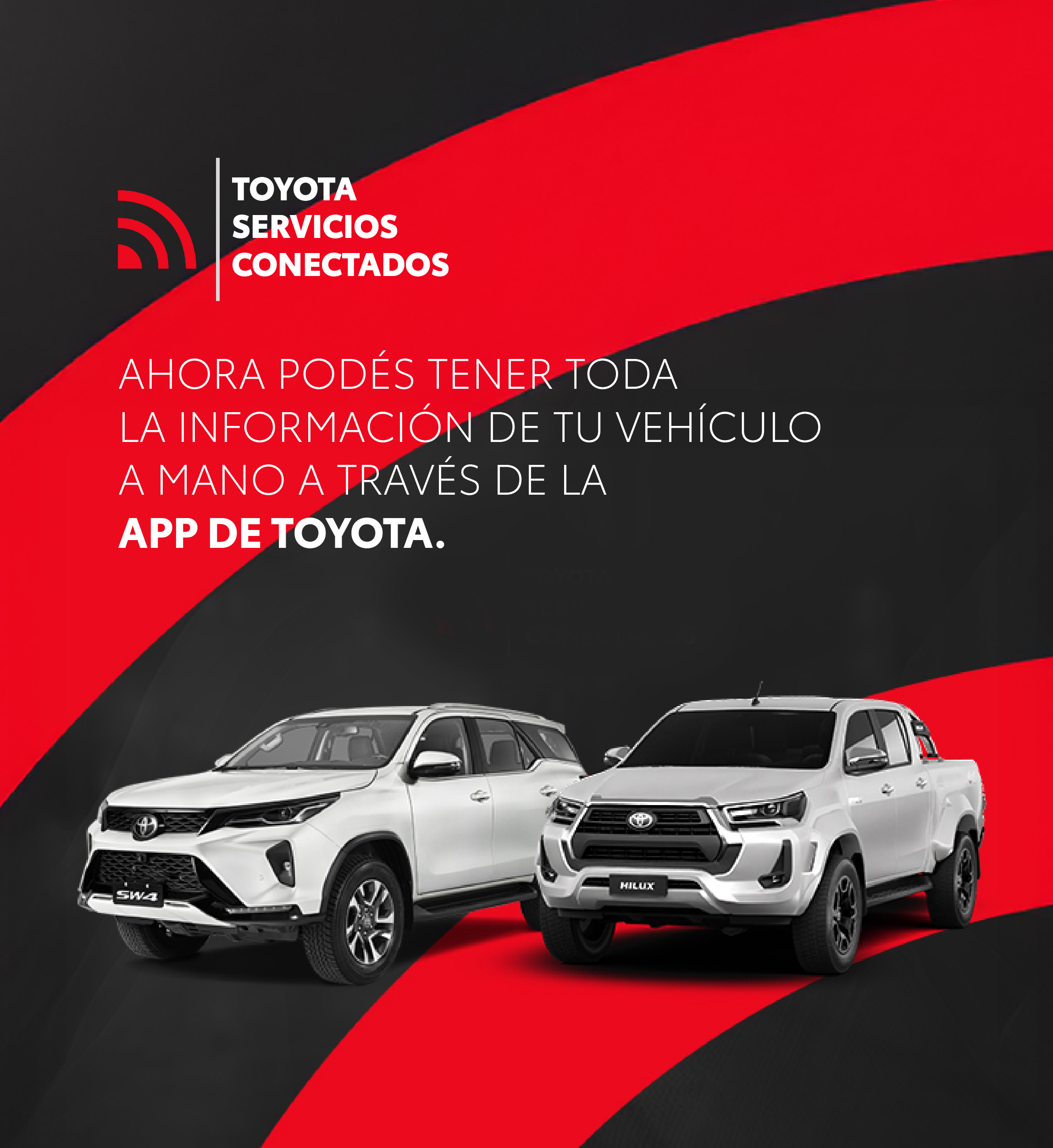 Para mejorar la experiencia con Toyota y descubrir todas las soluciones de movilidad, conéctate desde donde estés para agendar tu turno de servicio, visualizar información clave de tus planes de ahorro, descargar los cupones de pago y mucho más. En Toyota, estamos contigo en cada kilómetro.